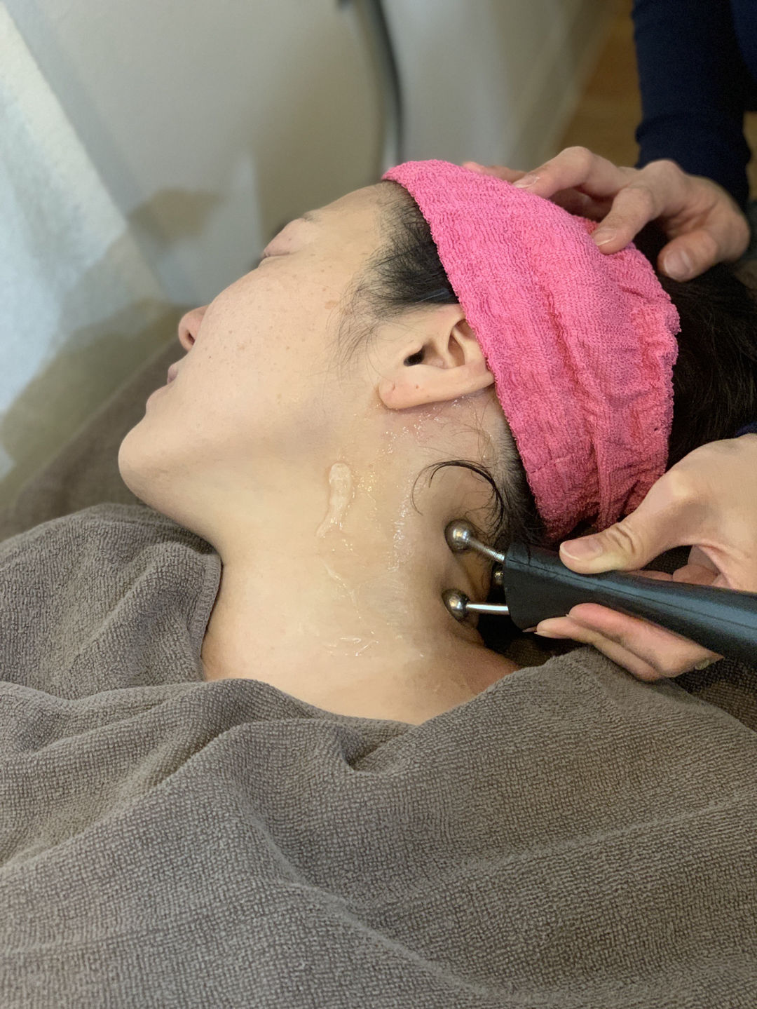 従来のEMS(電気刺激)マシンと違い治療レベルの機器を使います。 深度3段階、強度40段階の3D立体動態波で表情筋のインナーマッスルまで刺激します。 お客様は寝ているだけでEMSの力で自力では動かせない表情筋まで刺激することでたるみを引き上げ、ハリのあるお顔に。 筋力トレーニングと同じですので効果的な頻度とタイミングがあります。 初めての方や他店で入られていた方には【初回特典】を用意していますので公式LINEからお問い合わせください。
